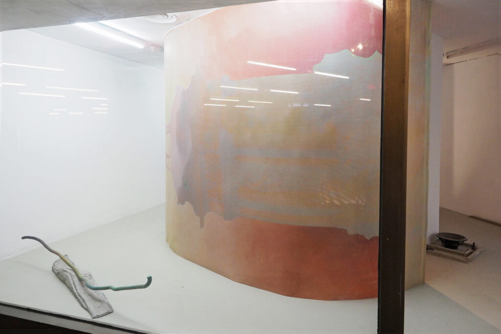 El eco de pasado y el presente de las personas visitantes, resuena en la instalación sonora interactiva. Activan una composición generativa a partir de sonidos electrónicos y nos abre un nuevo espacio acústico cambiante.