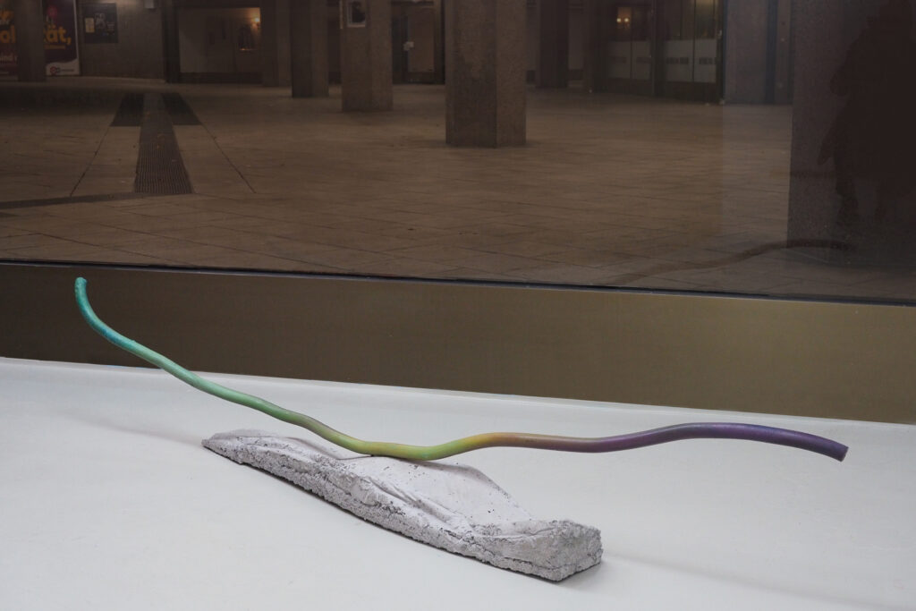Die Gegenwart bildet die Grundlage der Installation, und darauf aktivieren die sich bewegenden Körper die Klangkomposition.